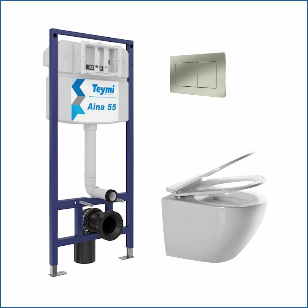 Инсталляция с унитазом комплект 5 в 1 Teymi унитаз подвесной безободковый Lina Media кнопка нержавеющая сталь F13682