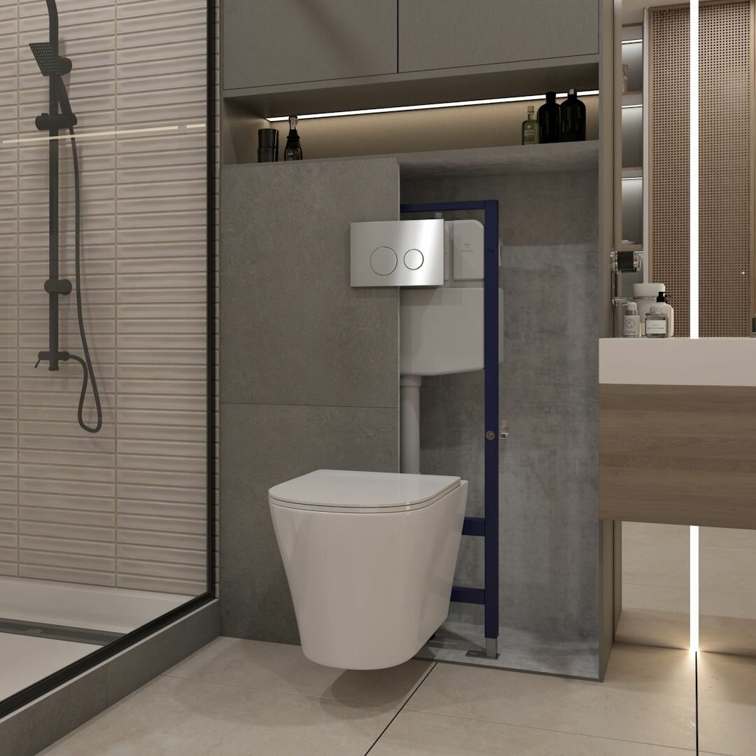 Инсталляция с унитазом комплект 5 в 1 Teymi унитаз подвесной безободковый Ellie кнопка хром F13642