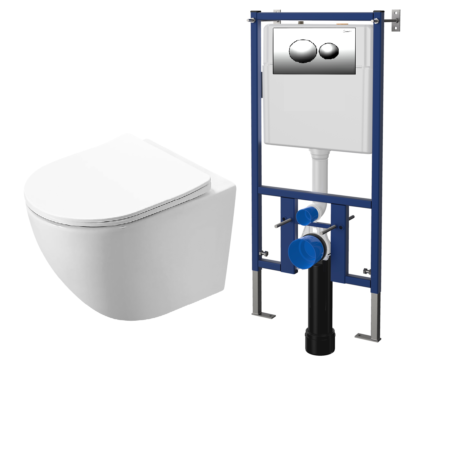 Купить Сет LORANTO Инсталляция с круглой кнопкой хром глянцевая + Унитаз подвесной Azario Trevi s/c