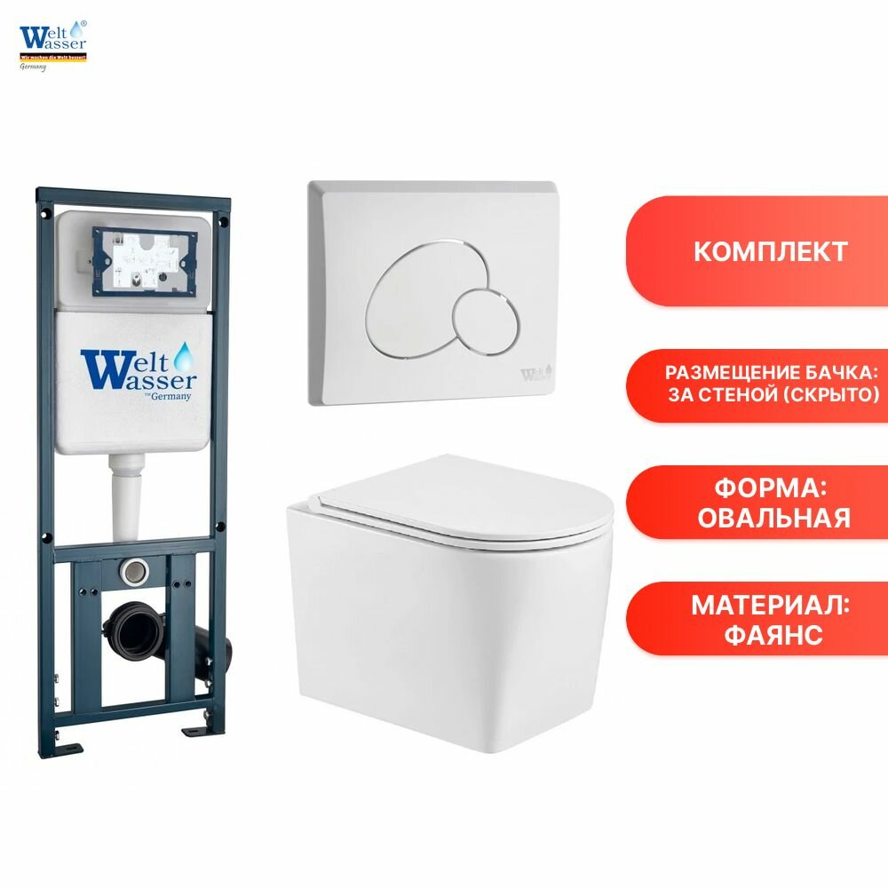 Инсталляция с унитазом WeltWasser MARBERG410, унитаз NESENBACH004GL-WT белый глянец, клавиша MAR410RD-WT белый