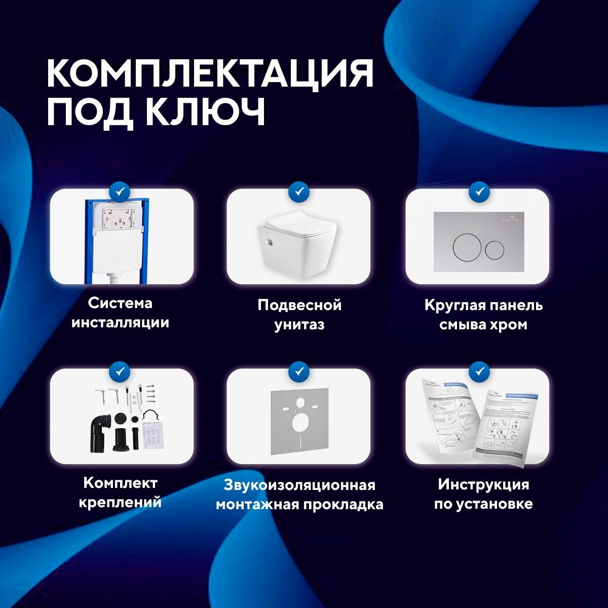 Купить Комплект Amore di Mare 6 в 1: инсталляция QuickFit 50114, безободковый унитаз Garda Bidet P310-X, кнопка хром 303CH