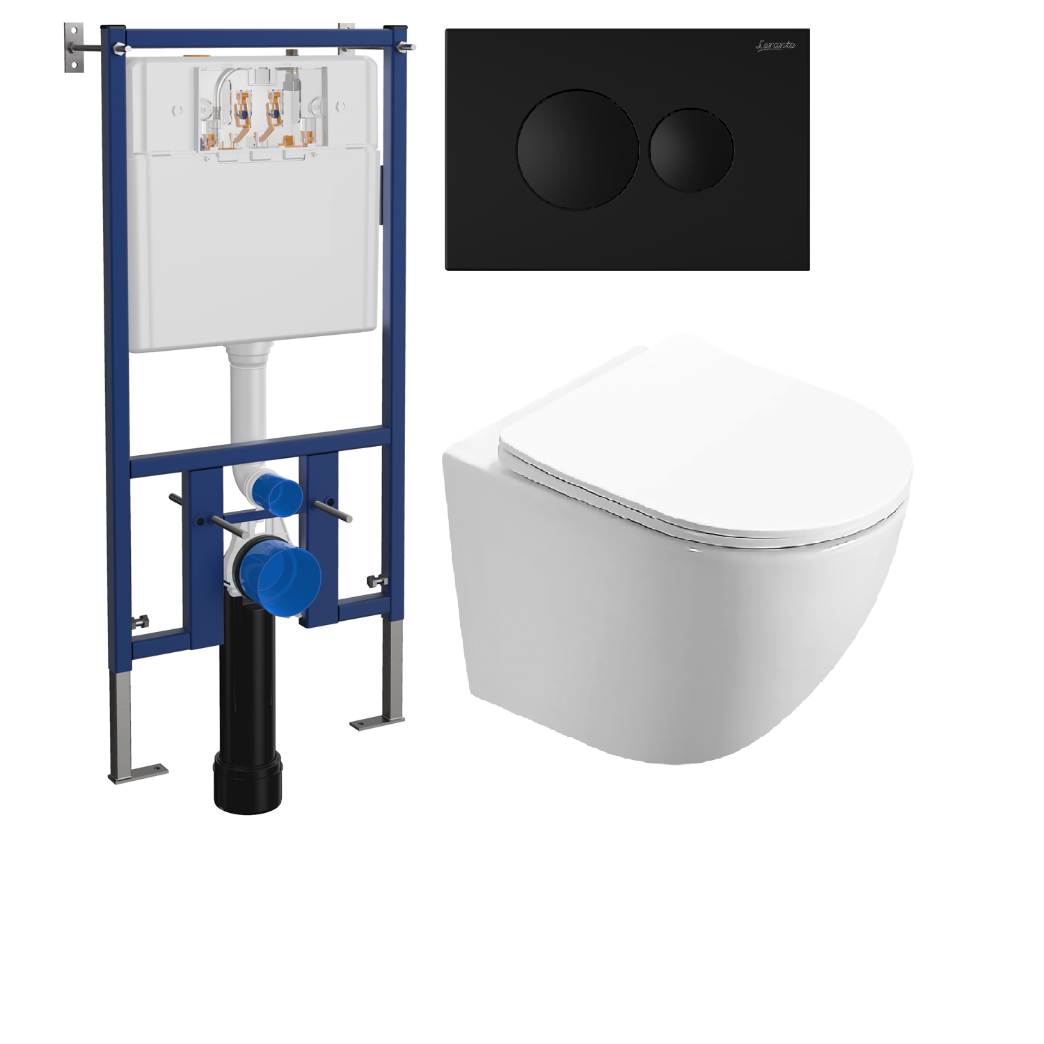 Купить Сет LORANTO Инсталляция с круглой кнопкой черная матовая + Унитаз подвесной Azario Trevi s/c