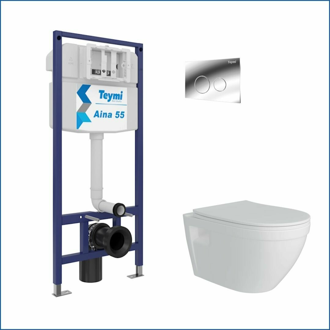 Инсталляция с унитазом комплект 5 в 1 Teymi унитаз подвесной безободковый Vitra кнопка хром F13778