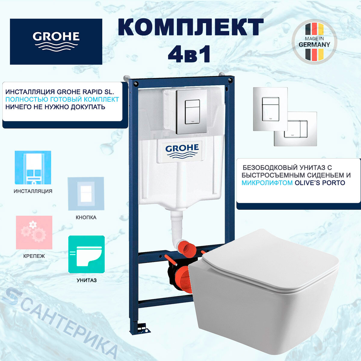 Инсталляция Grohe Rapid SL с подвесным унитазом OLIVE'S Porto PR30116DP, безободковый c сиденьем микролифт интересное: