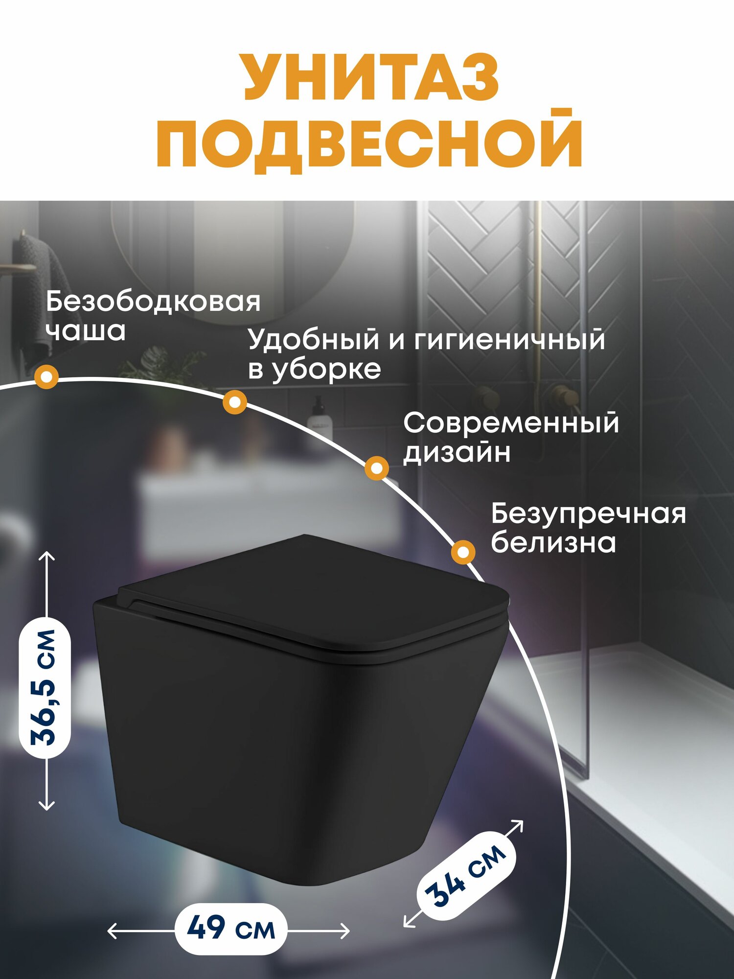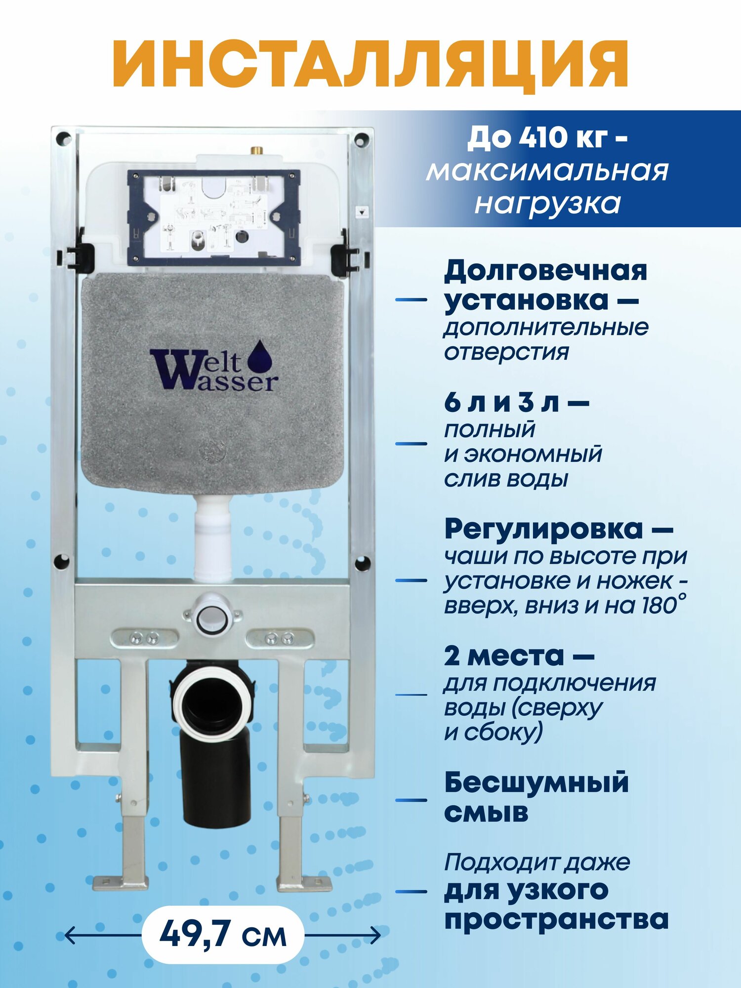 Комплект Weltwasser 6 в 1: Подвесной унитаз черный матовый, инсталляция, кнопка белая глянцевая закругленный квадрат интересное: