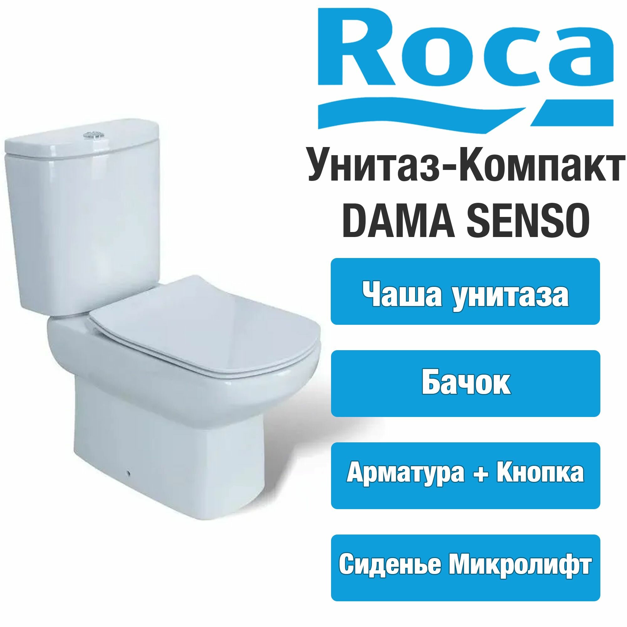 Унитаз-компакт Roca Dama Senso с сиденьем SLIM, дюропласт, микролифт. интересное: