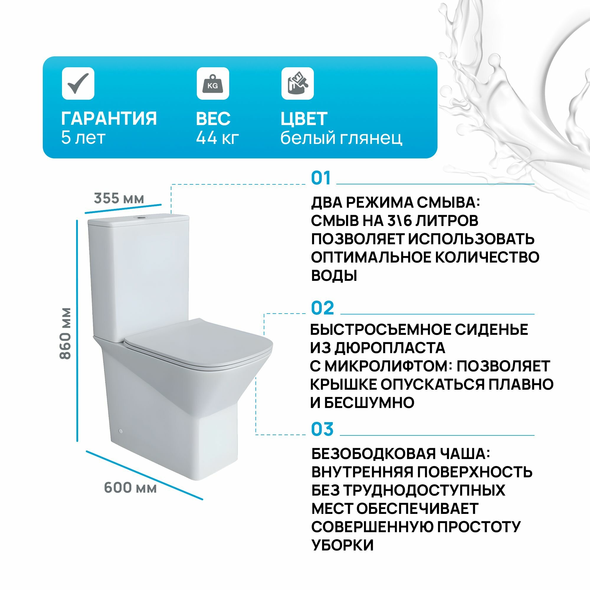 Купить Унитаз компакт Grossman Galaxy GR-4471S с бачком и сиденьем Микролифт