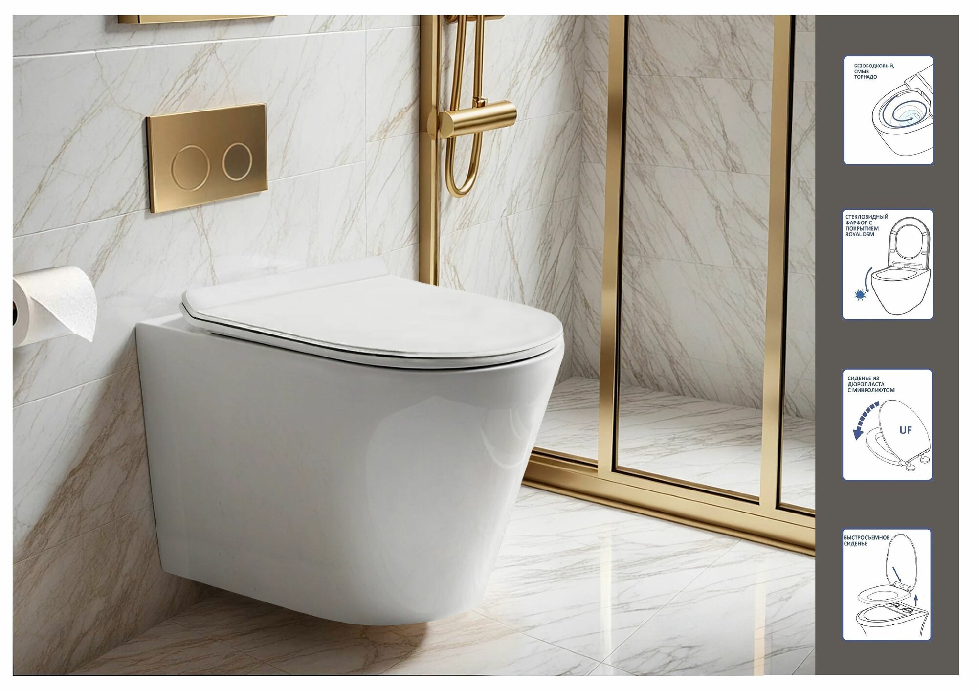 Подвесной унитаз Ceruttispa SELLA Aria Tornado (490*370*370) торнадо, безободковый, микролифт, белый