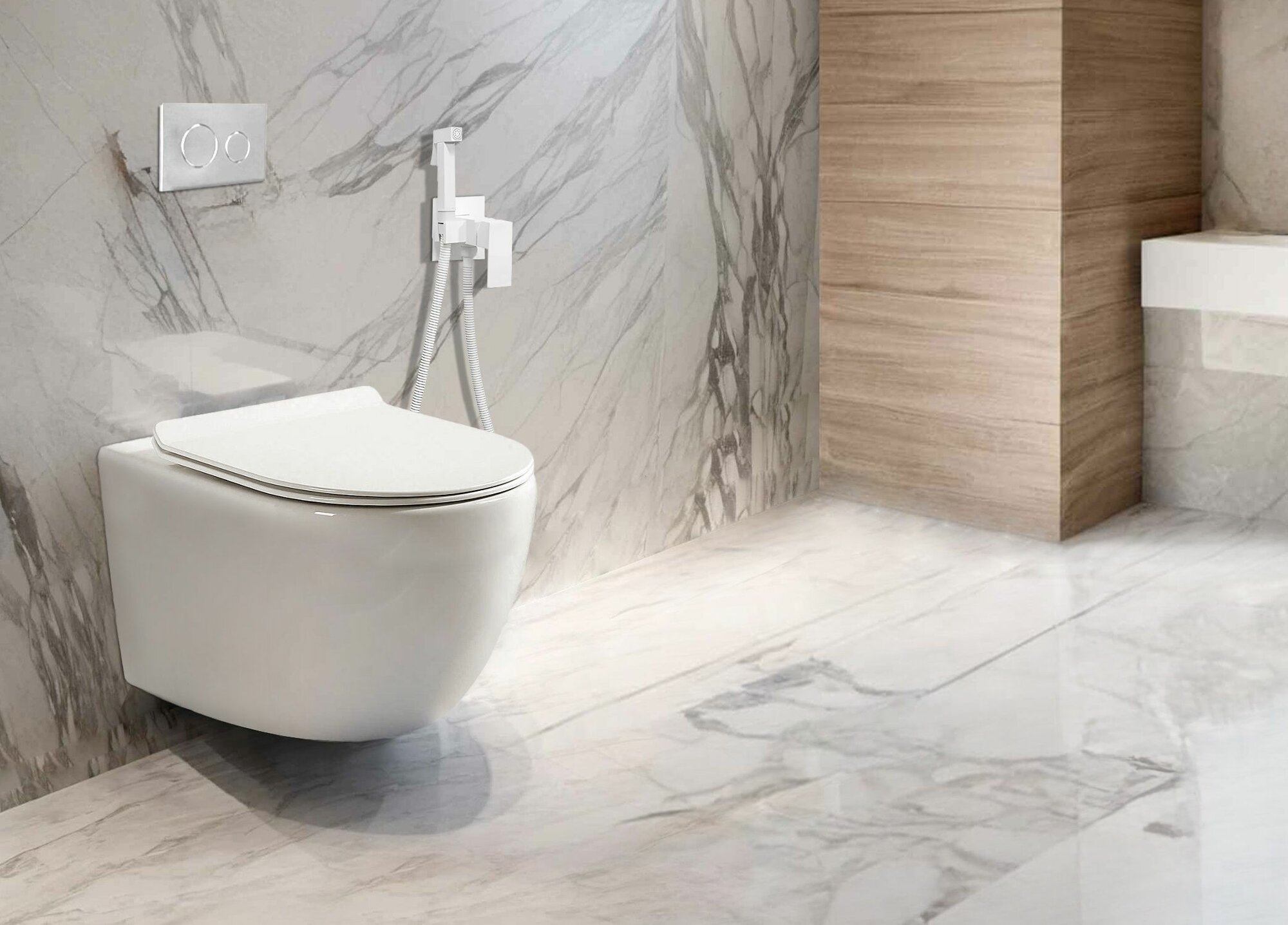 Подвесной унитаз Ceruttispa SELLA Aria Tornado MMW (490х370х370) торнадо, безободковый, микролифт, мрамор белый матовый