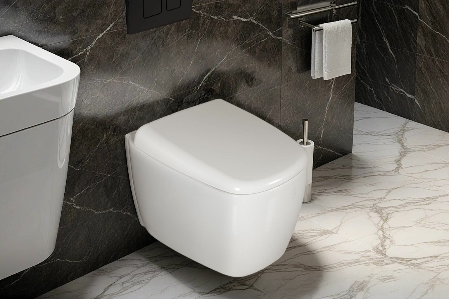 Подвесной унитаз Ceruttispa SELLA Aria Tornado MMW (490х370х370) торнадо, безободковый, микролифт, мрамор белый матовый