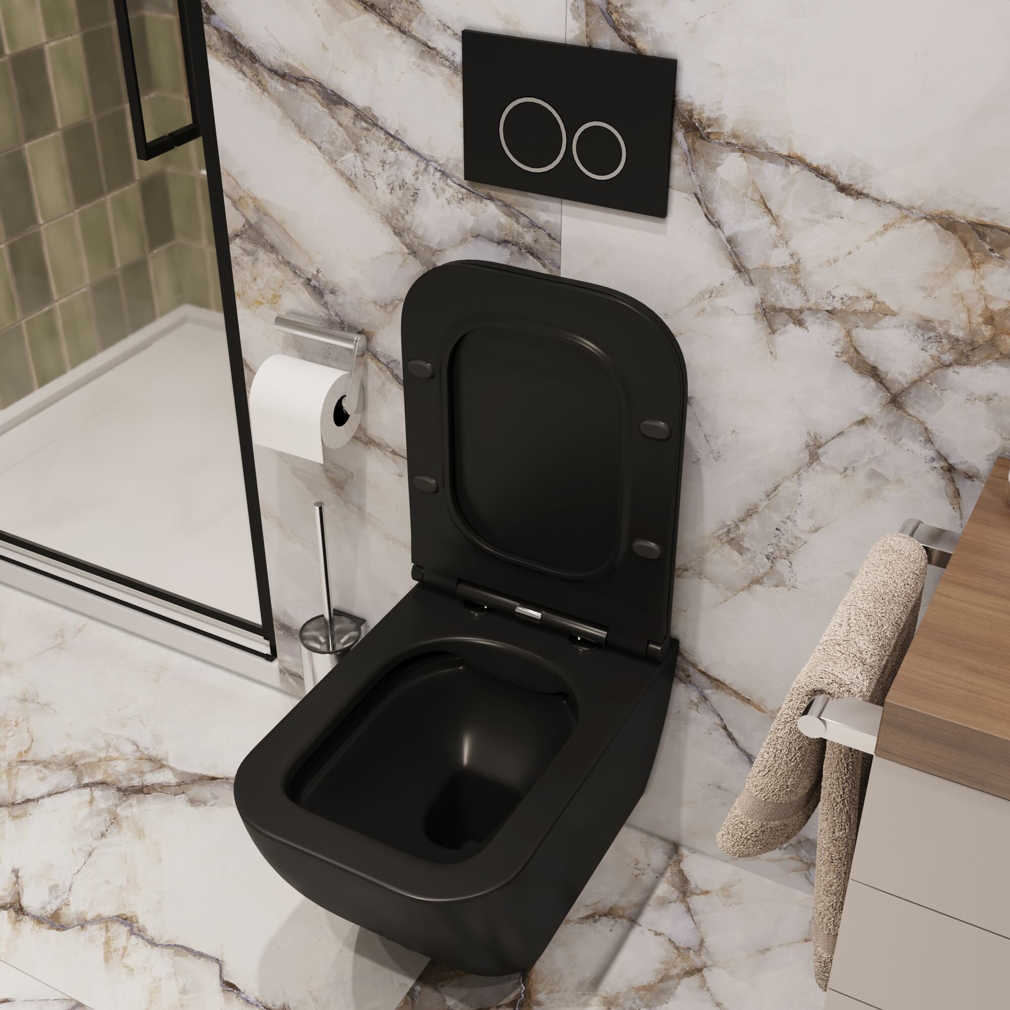 Подвесной унитаз Ceruttispa ORLTER Aria MBF (485х360х360) безободковый, микролифт, черный матовый