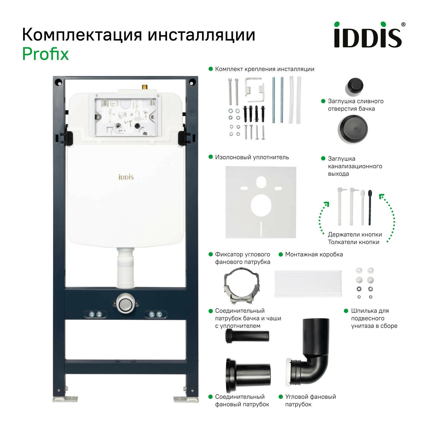 Комплект IDDIS Basic BASBQ02i73: подвесной унитаз, инсталляция и черная клавиша смыва