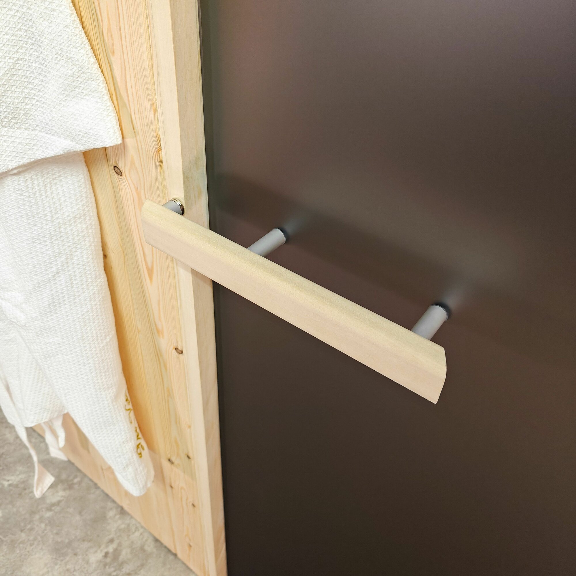 Купить Дверь для бани и сауны Gratec Kati, короб из массива липы, серое матовое закаленное стекло 8 мм, правое открывание