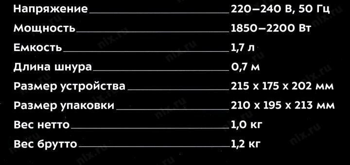 | Мощность | 2200 Вт |