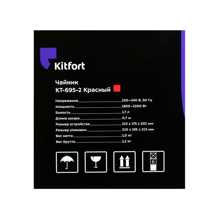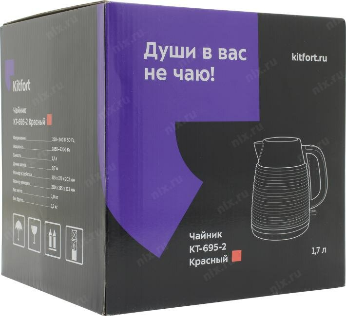 Чайник Kitfort 695-2-КТ Мощность 2200 Вт.Ёмкость 1,7 л.Режимы нагрева 100 С.красный 695-2-КТ