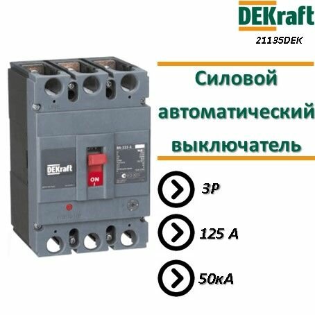 Купить Dekraft Силовой автоматический выключатель 3P 125A, ВА333-3P-0125A-A (21135DEK)