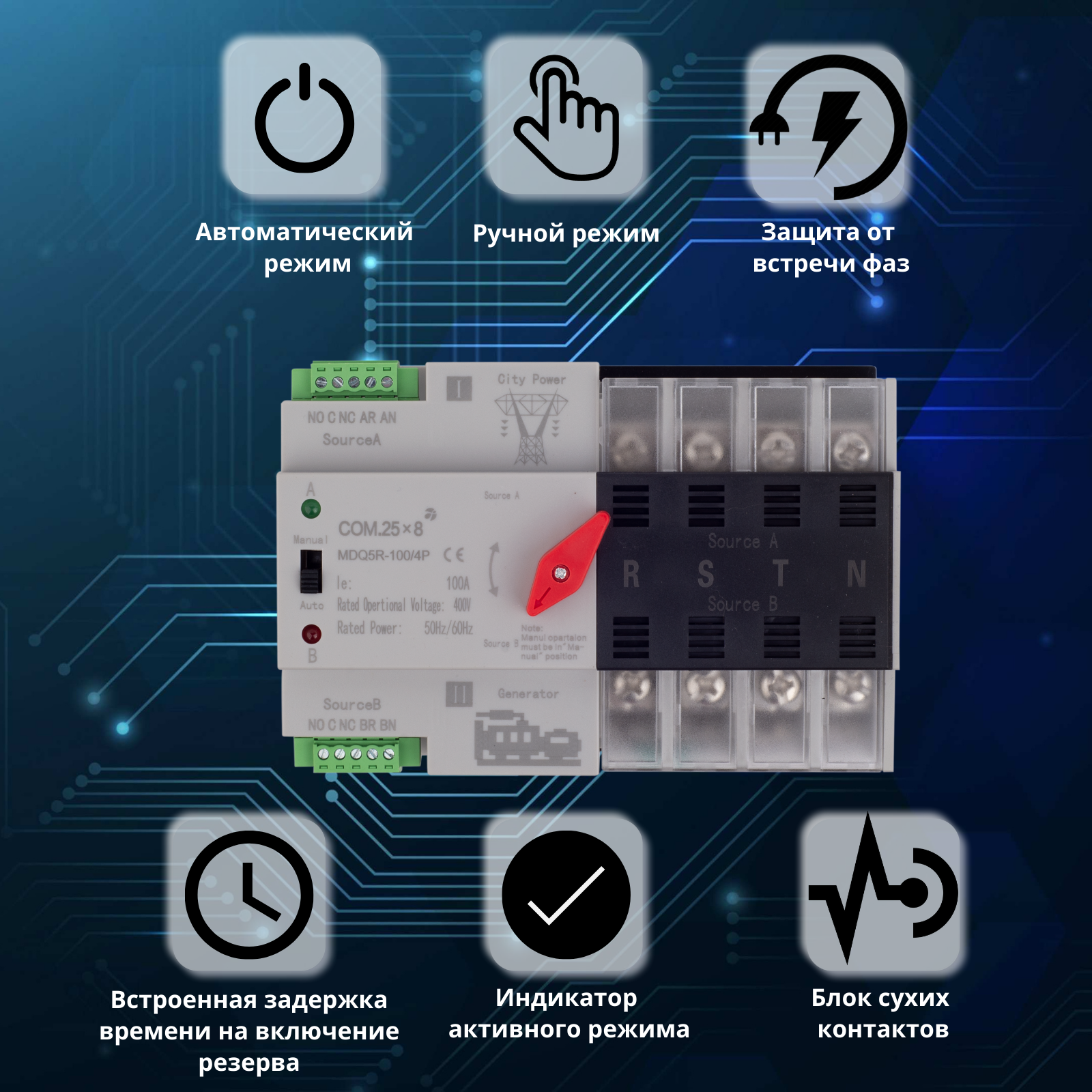 Реверсивный рубильник с эл. приводом COM.25x8 MDQ.5R-100/4Р, 380В, 100А интересное: