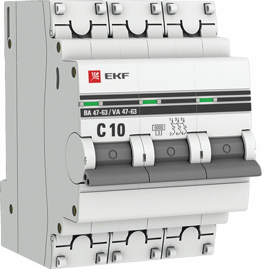 Автоматический выключатель 3P 6А (C) 6кА ВА 47-63 PROxima EKF mcb4763-6-3-06C-pro
