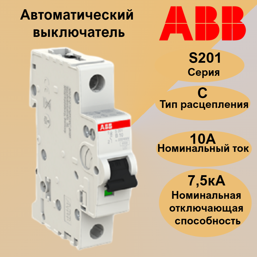 ABB Автоматический выключатель однополюсный B 10А 6кА S201, арт.2CDS251001R0105 интересное: