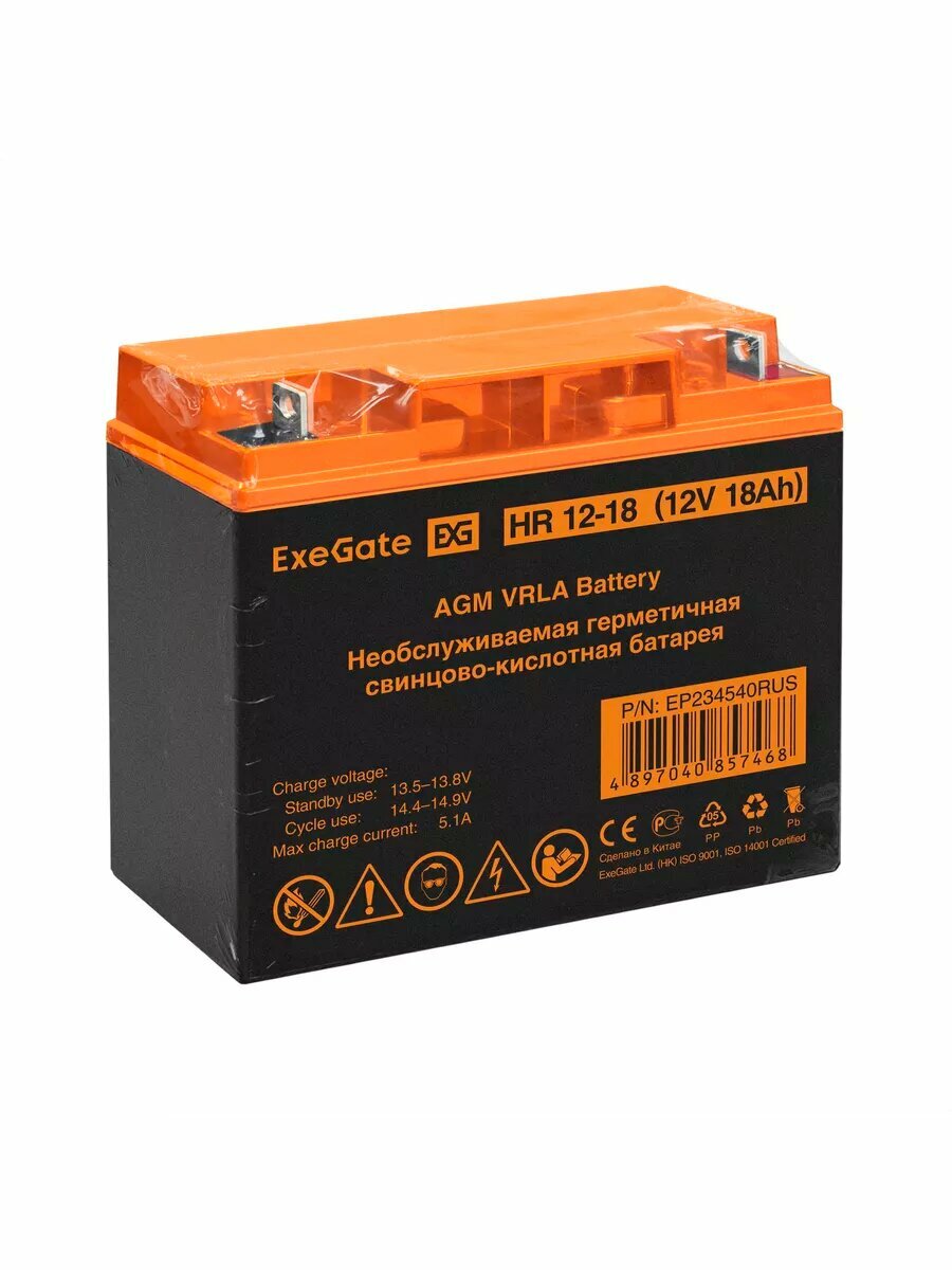 Аккумуляторная батарея ExeGate HR 12-18 (12V 18Ah, клеммы F3 (болт М5 с гайкой)) EP234540RUS интересное: