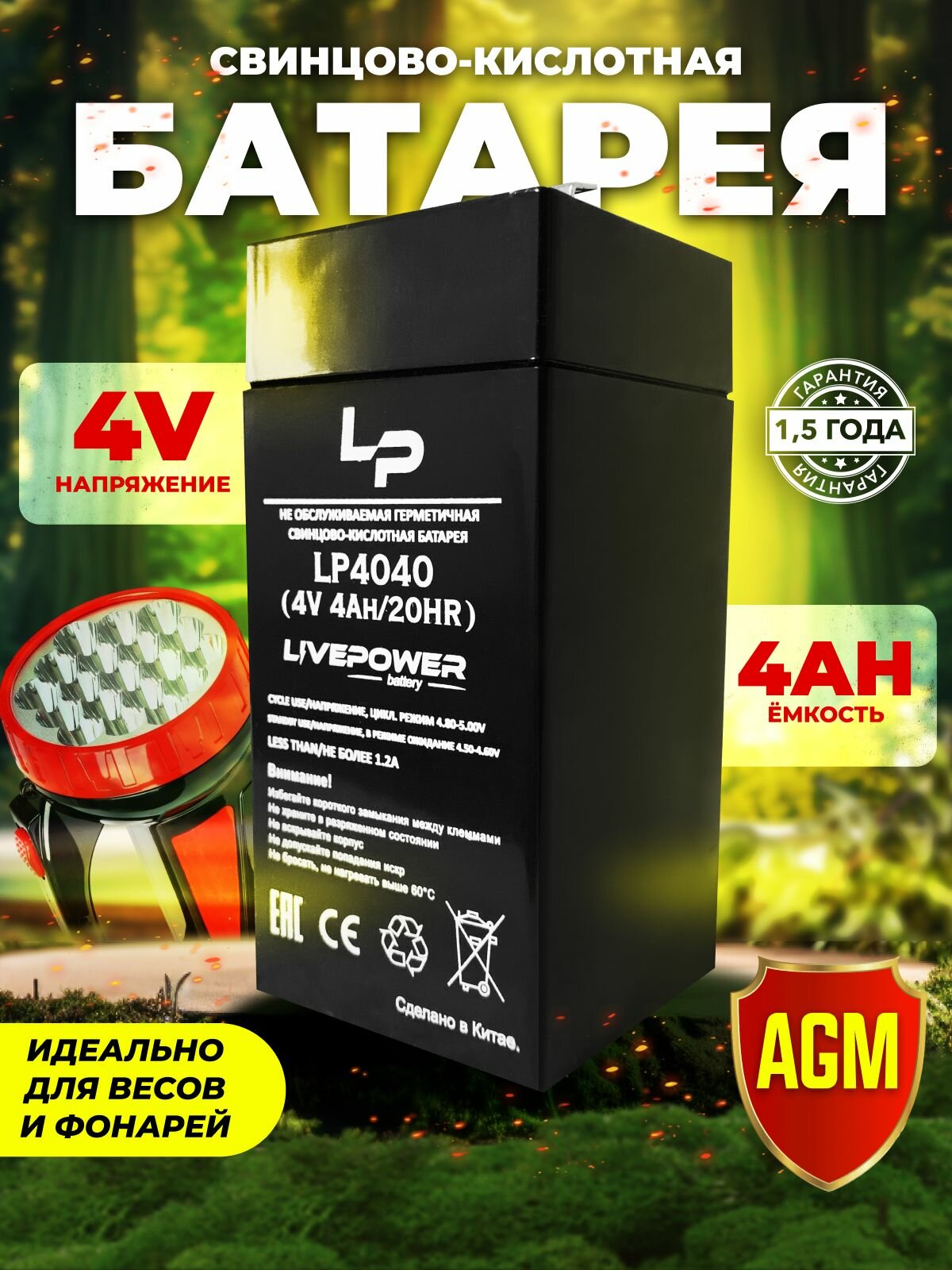 Аккумулятор Live Power 4Ват 4Ач, АКБ для весов, фонарей, чёрный интересное: