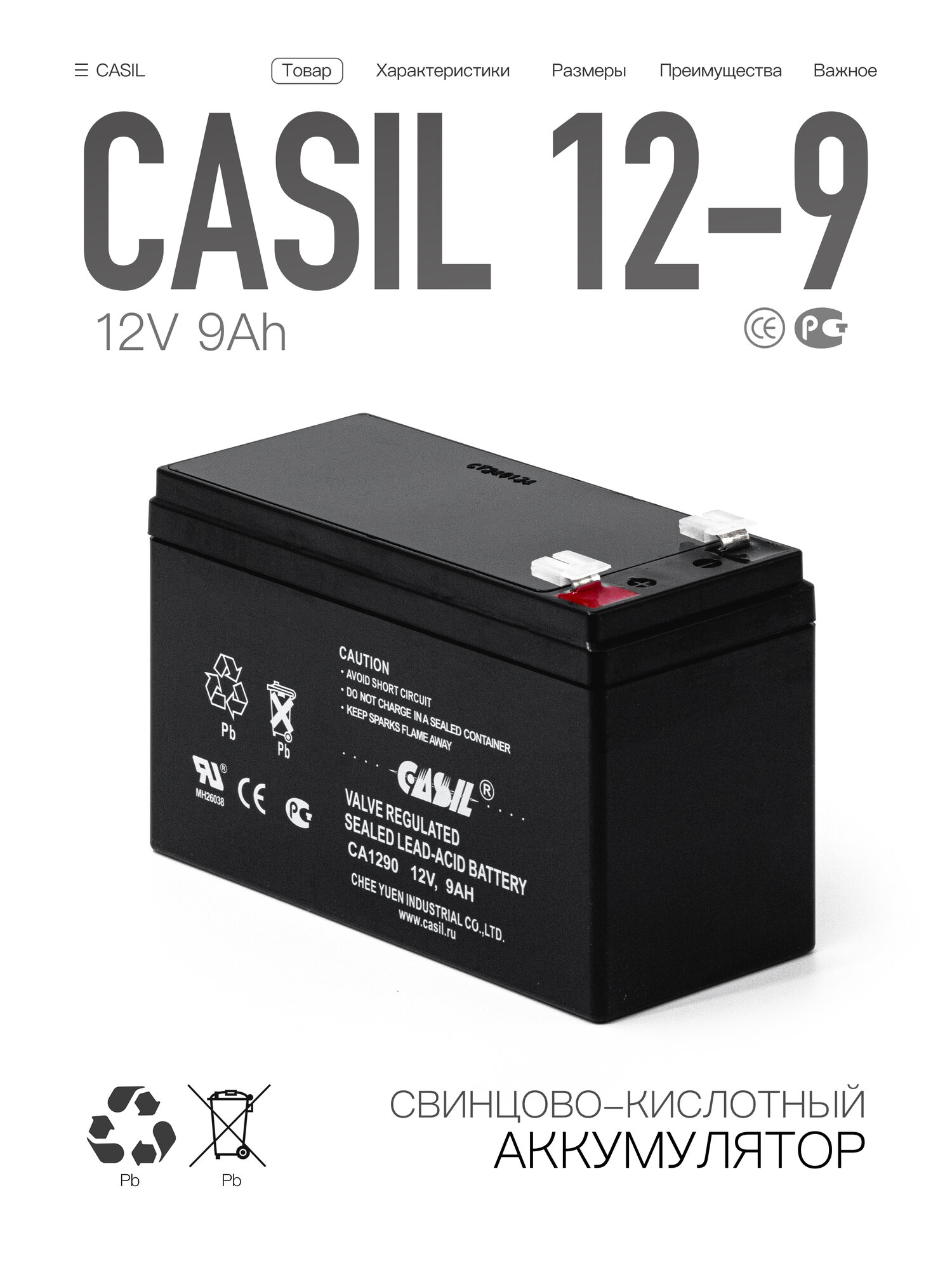 Свинцово - кислотный аккумулятор CASIL CA 1290 (12 В , 9 Ач) интересное: