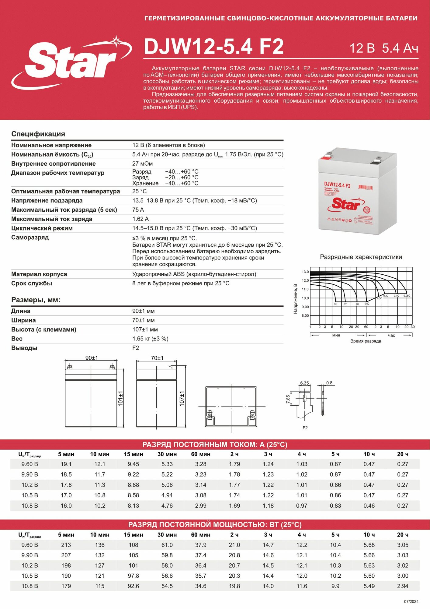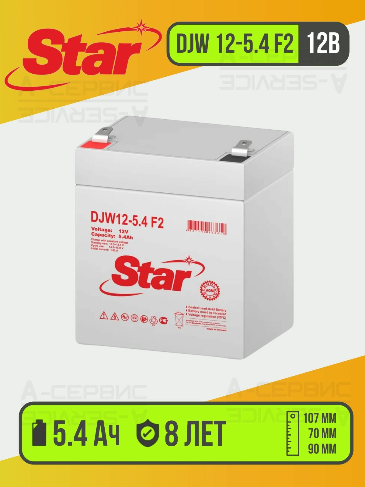 Купить Аккумуляторная батарея 12В 5.4Ач DJW12-5.4 F2 STAR для ИБП, сигнализаций и электроприборов