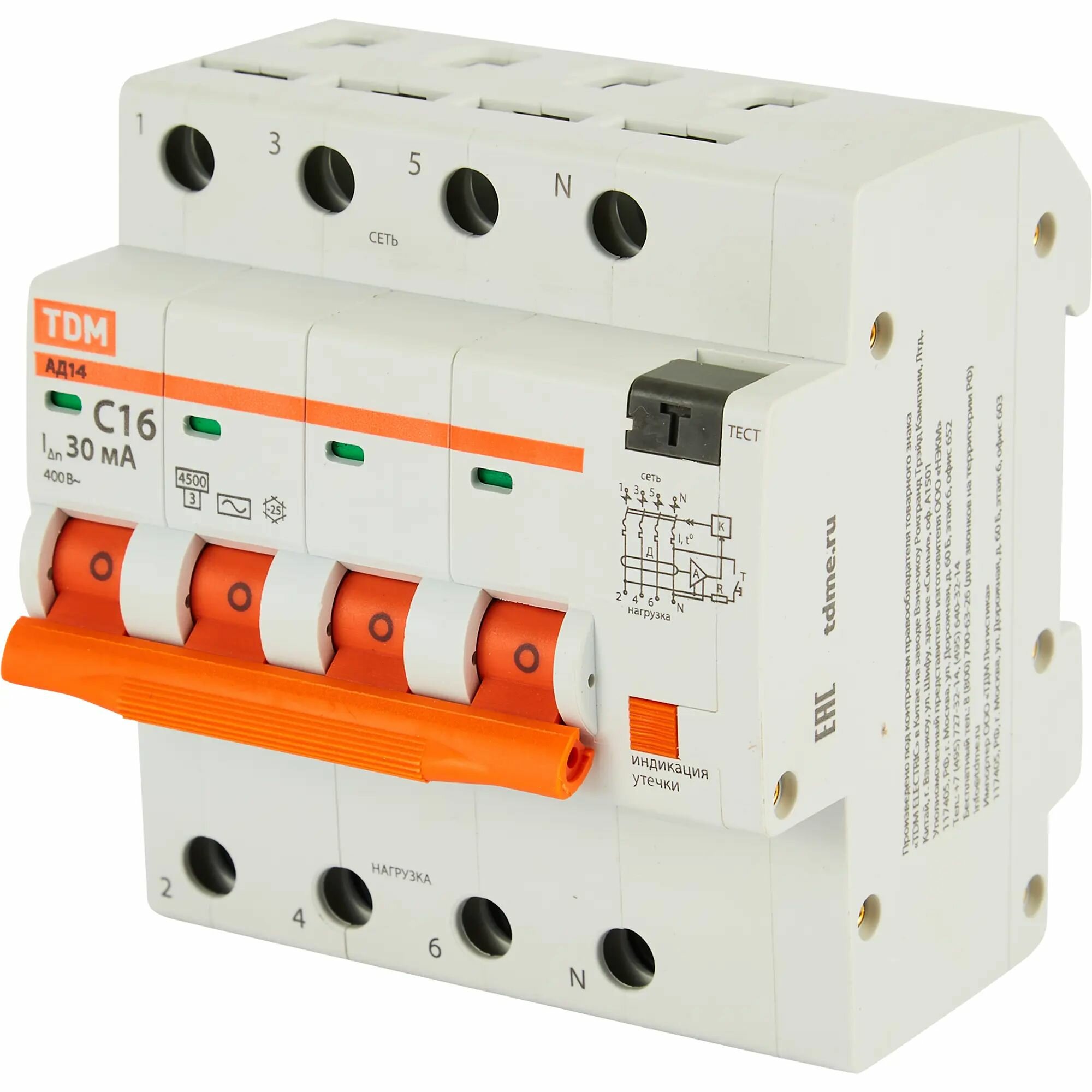 Диф. автомат АД14 4Р 16А 30мА TDM