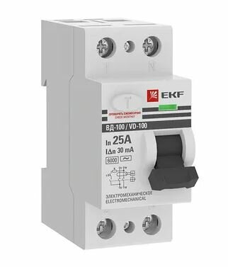 Купить EKF УЗО ВД-100 2P 25А 30мА (тип АС, электромеханическое) 6кА PROxima арт. elcb-2-6-25-30-em-pro