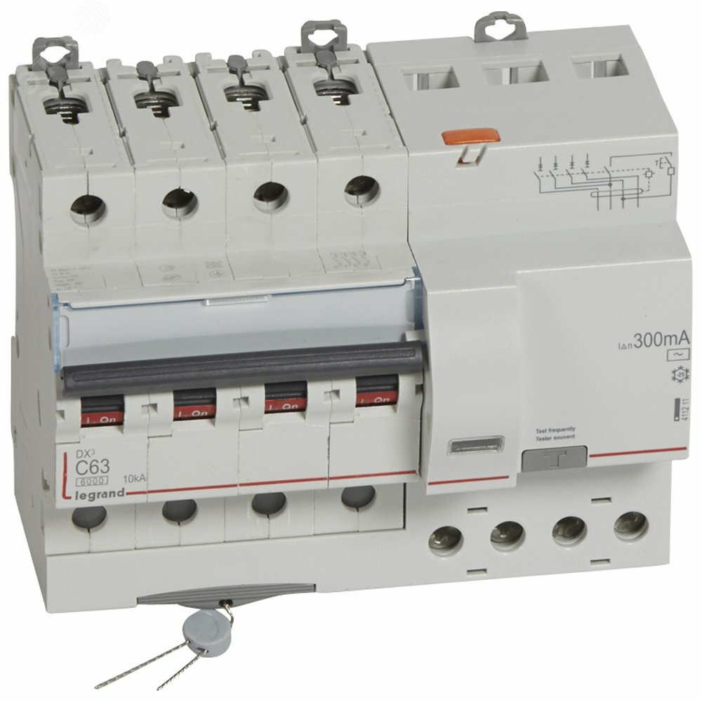 Дифавтомат Legrand DX3, 63А, 4полюса, электромеханический, 300мА, 7модулей 411211 интересное: