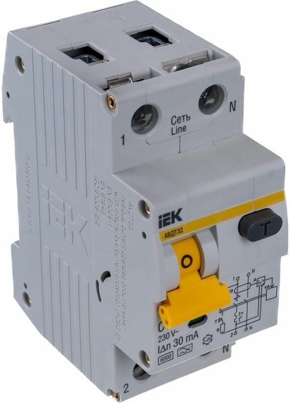 Выключатель автоматический дифференциального тока 2п C 32А 30мА тип A 4.5кА АД-12М IEK MAD12-2-032-C-030