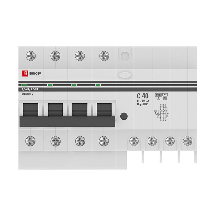 Дифференциальный автомат АД-4 S 40А-300мА (хар. C, AC, электронный) 4,5кА EKF PROxima интересное: