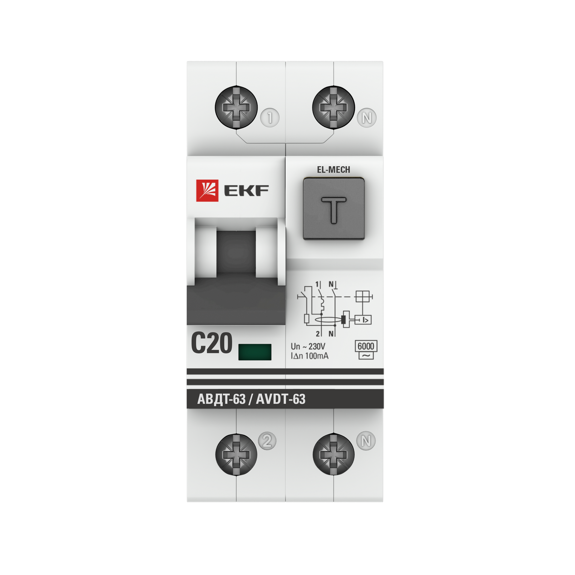 Купить Дифференциальный автомат АВДТ-63 20А-100мА (характеристика C, эл-мех, тип АС) 6кА EKF PROxima