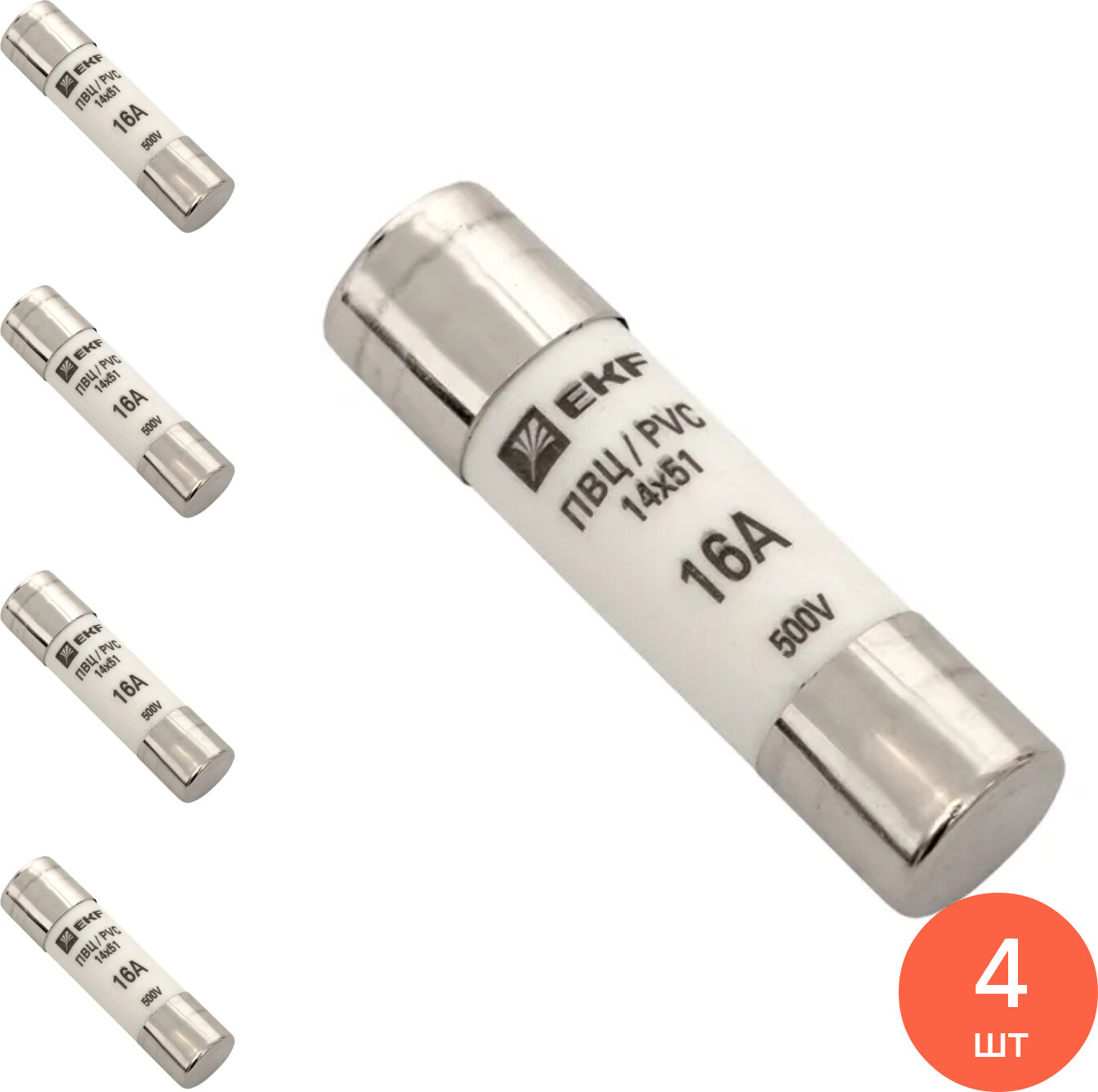 Купить Вставка плавкая EKF / ЕКФ ПВЦ цилиндрическая, 14х51мм 16А, 220В, pvc-14x51-16 / предохранитель (комплект из 4 шт)