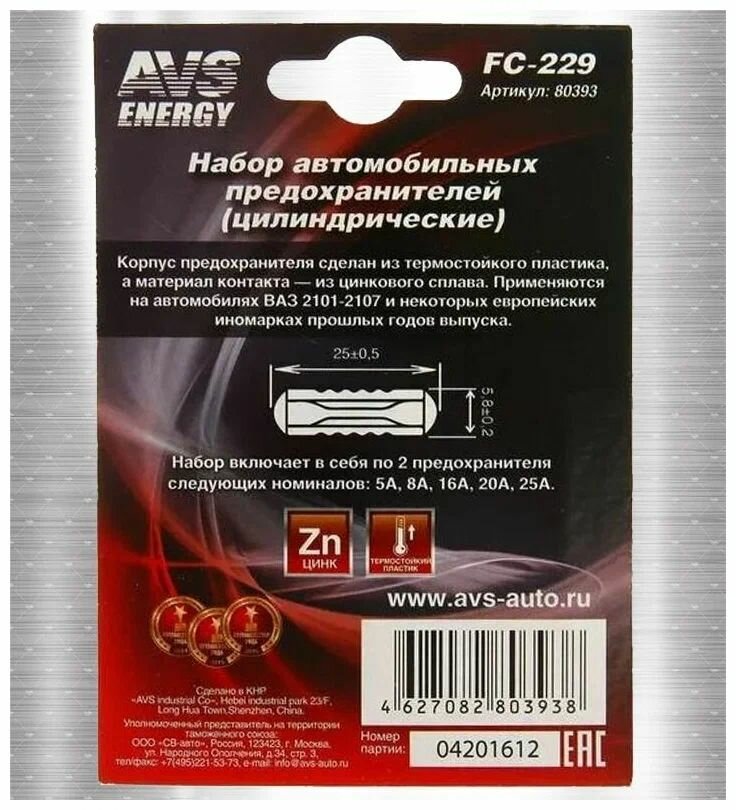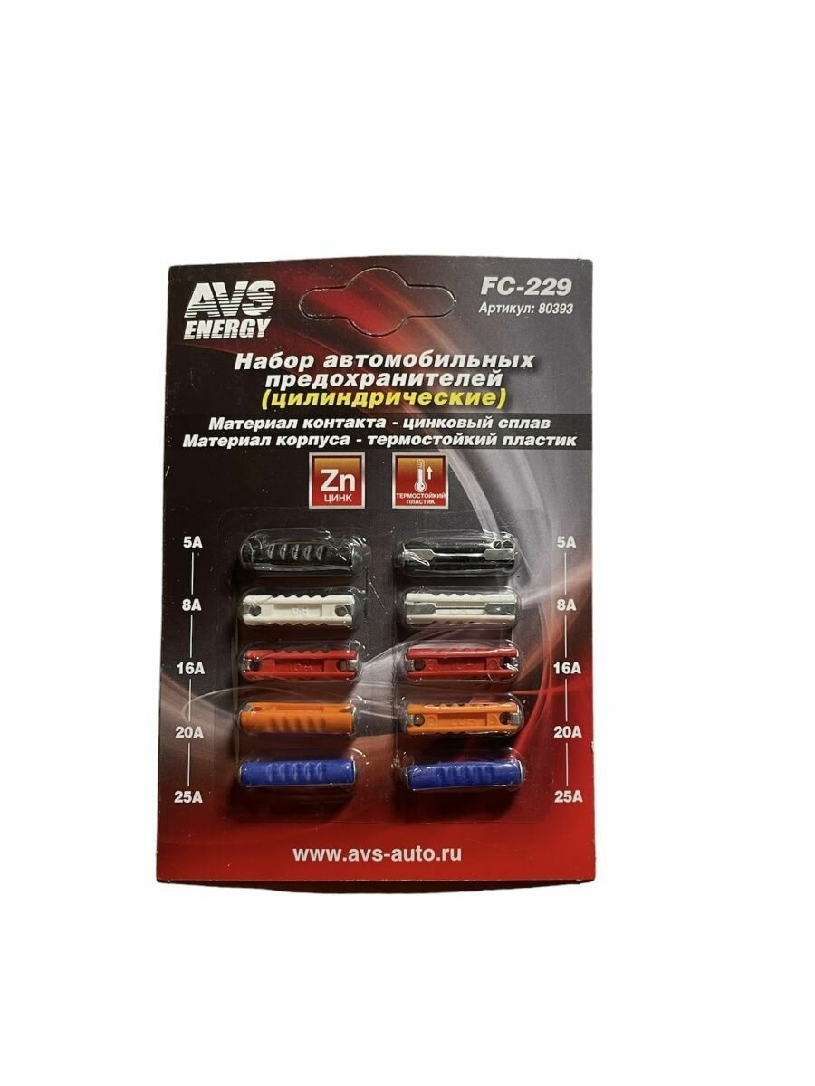 Набор предохранителей FC-229 (цилиндрические) в блистере (10 шт) AVS 80393 интересное:
