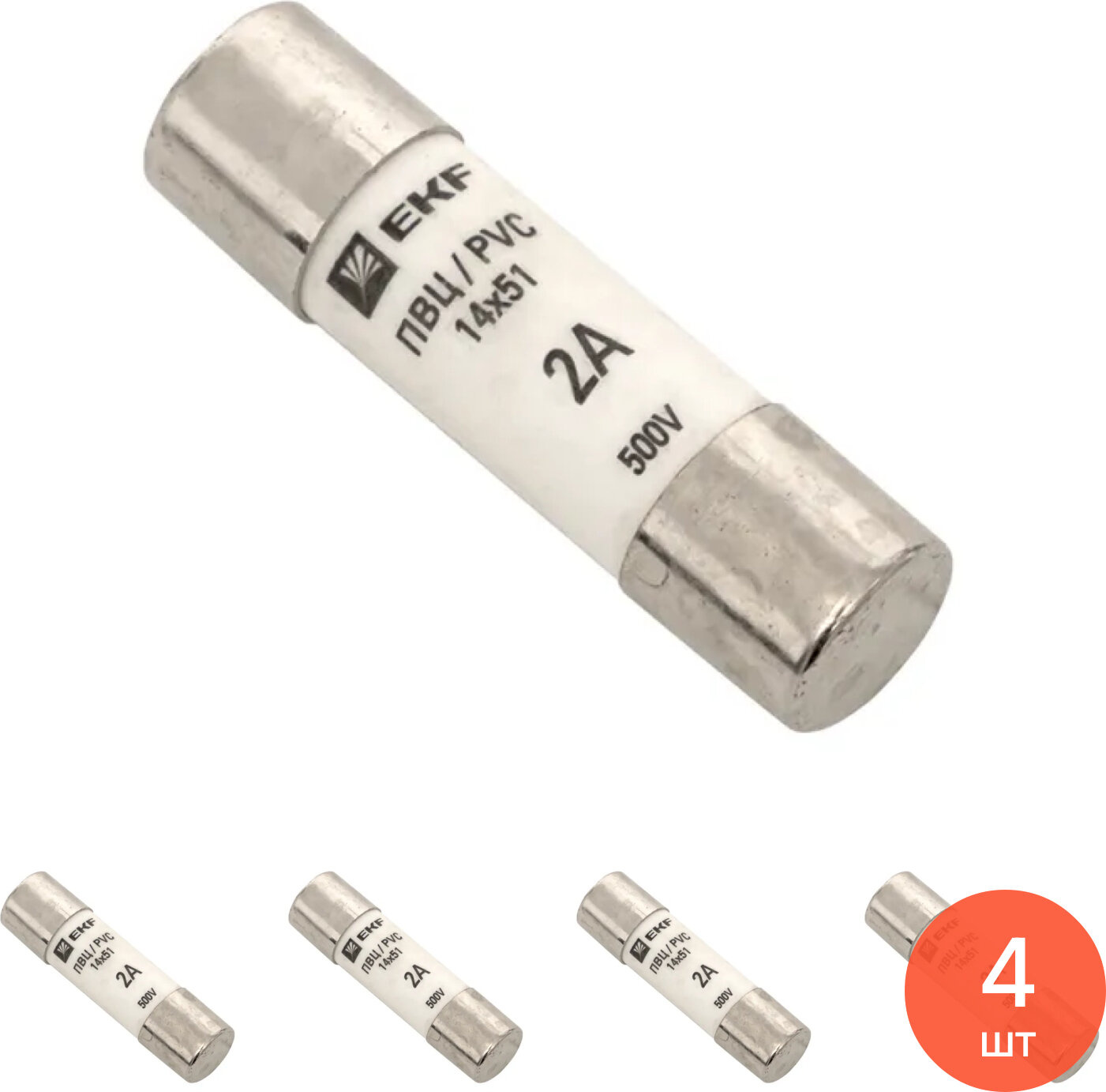 Купить Вставка плавкая EKF / ЕКФ ПВЦ цилиндрическая, 14х51мм 2А, 220В, pvc-14x51-2 / предохранитель (комплект из 4 шт)