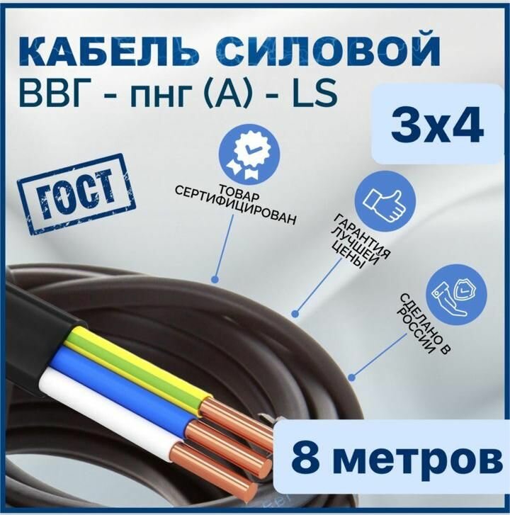 Купить Кабель ВВГ Пнг (A) LS 3х4 8 метров