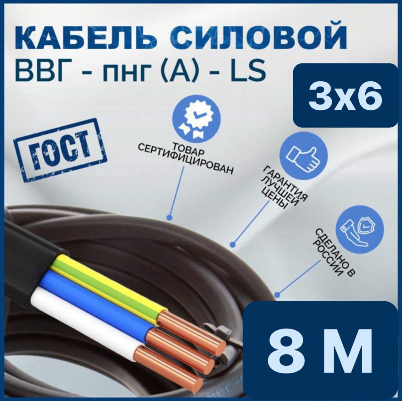 Купить Кабель ВВГ Пнг (А) Ls 3x6, 8 метров