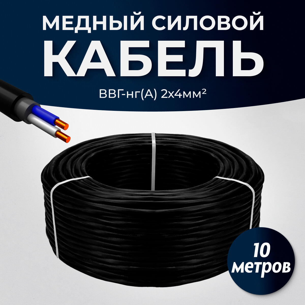 Купить Силовой кабель ТУ ВВГ-Пнг(А)-LS 2 х 4.0 мм, 10 метров