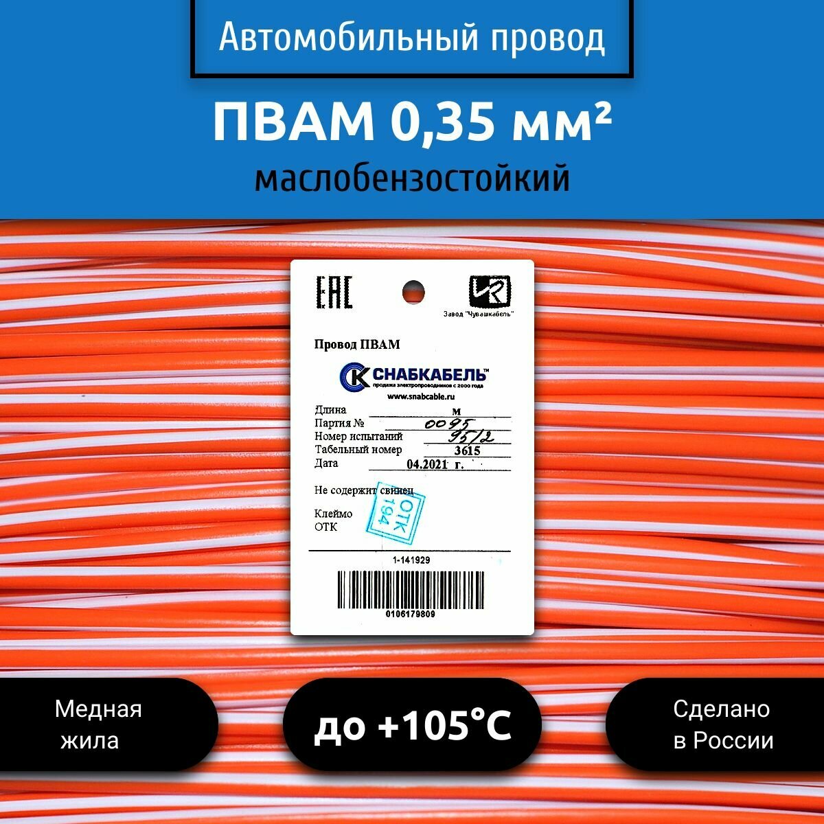 Провод автомобильный пвам (ПГВА) 0,35 (1х0,35) оранжево/белый 100 м