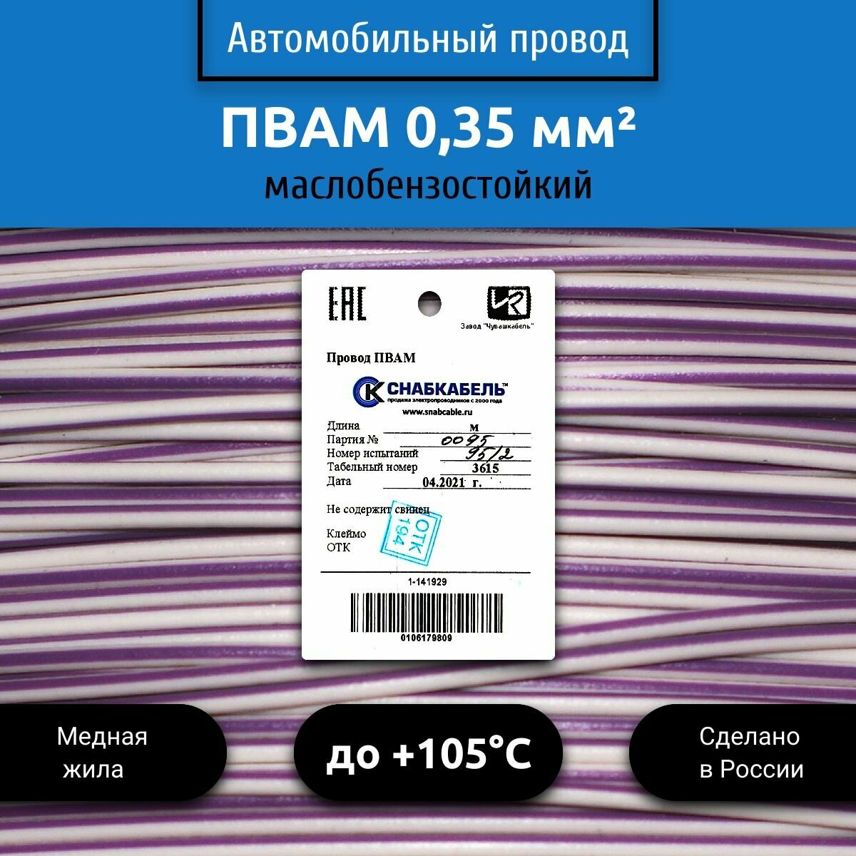 Ниже Вы можете прочитать отзывы на Провод автомобильный пвам (ПГВА) 0,35 (1х0,35) бело/фиолетовый 100 м, ознакомится с подробными характеристиками, посмотреть интересные обзоры и фотографии на Провод автомобильный пвам (ПГВА) 0,35 (1х0,35) бело/фиолетовый 100 м.