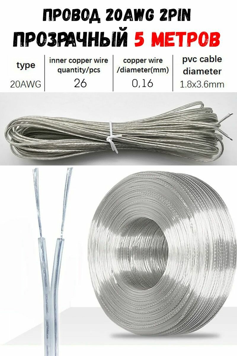 Провод 20 AWG двойной прозрачный 5 метров AWG 20 интересное: