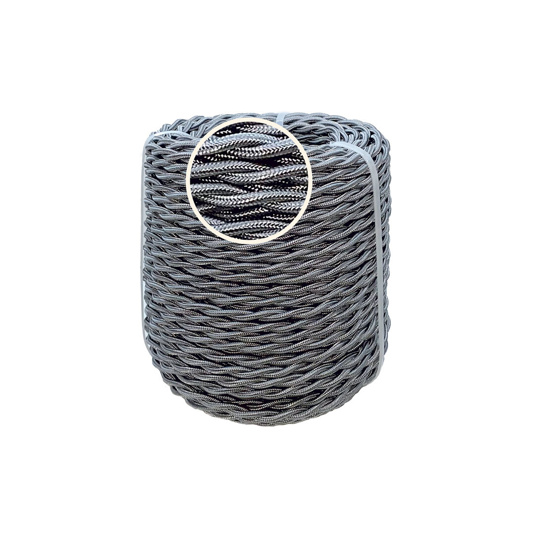 Ретро проводка, витой провод, EDISEL ПРВ 2х2,5 ГОСТ, Серый, 50 м