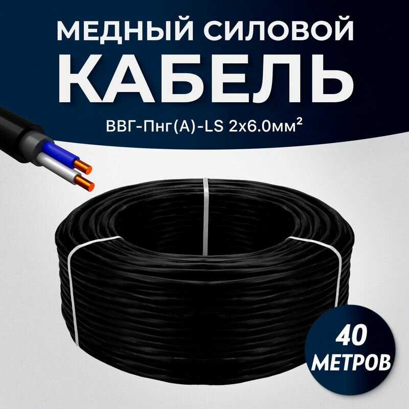 Купить Силовой кабель ВВГ-Пнг(А)-LS плоский 2 х 6.0 мм, 40 метров