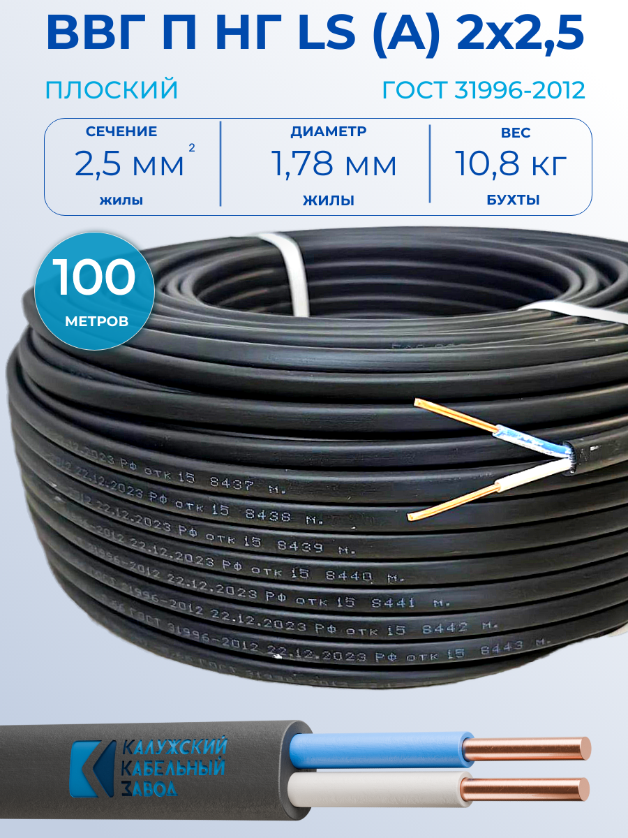 Кабель силовой ВВГ П нг LS 2х2,5-100 , Калужский кабельный завод интересное: