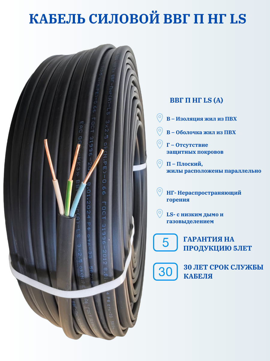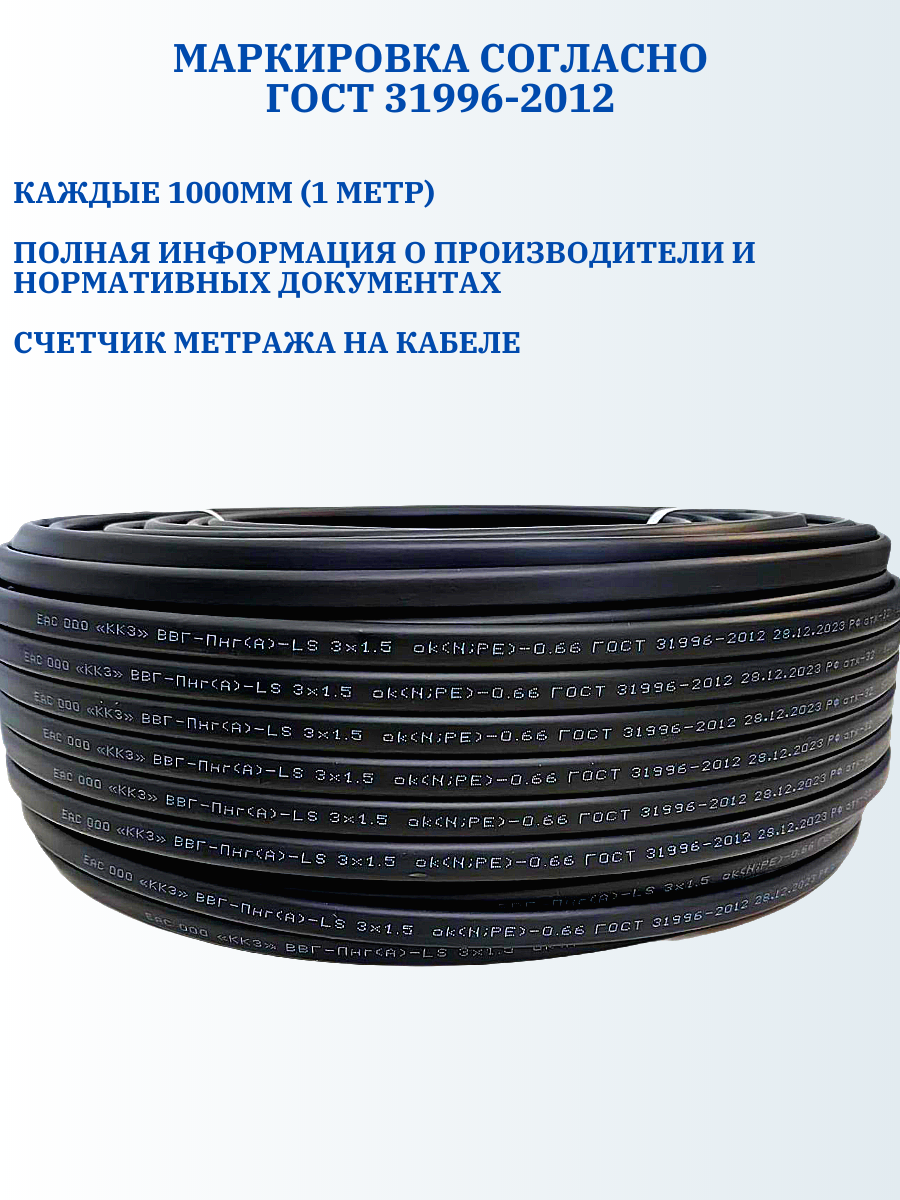 Кабель силовой ВВГ П нг LS 3х1,5-50, Калужский кабельный завод интересное: