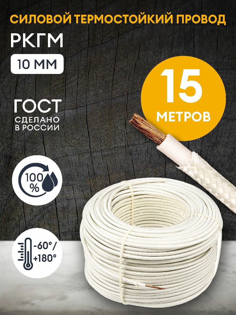 СохранитьПровод термостойкий РКГМ 10.0 мм2 /15 метров / Силовой термостойкий кабель РКГМ/ Электрический кабель для бань, саун, каминов, печей. интересное: