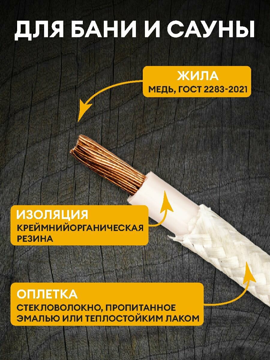 Провод термостойкий РКГМ 25.0 мм2 / 20 метров / Силовой теплостойкий кабель для бань, саун, каминов, печей.