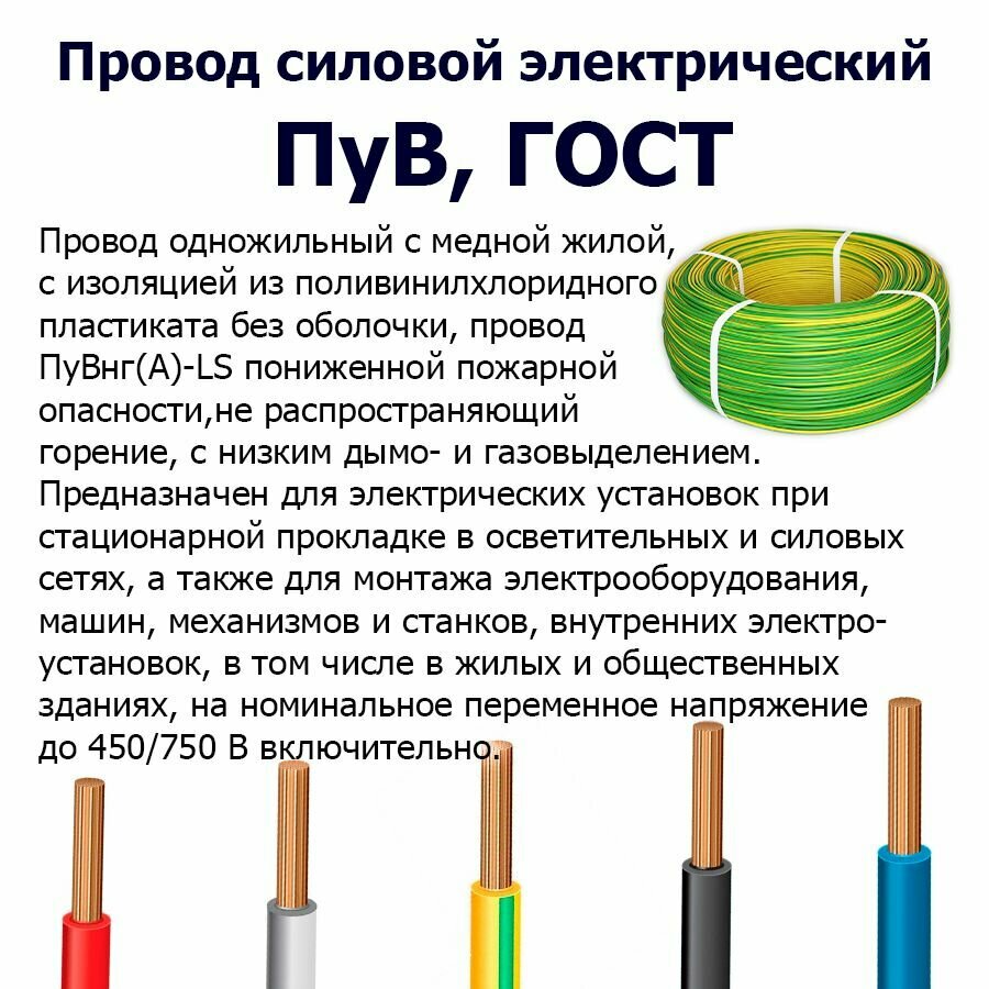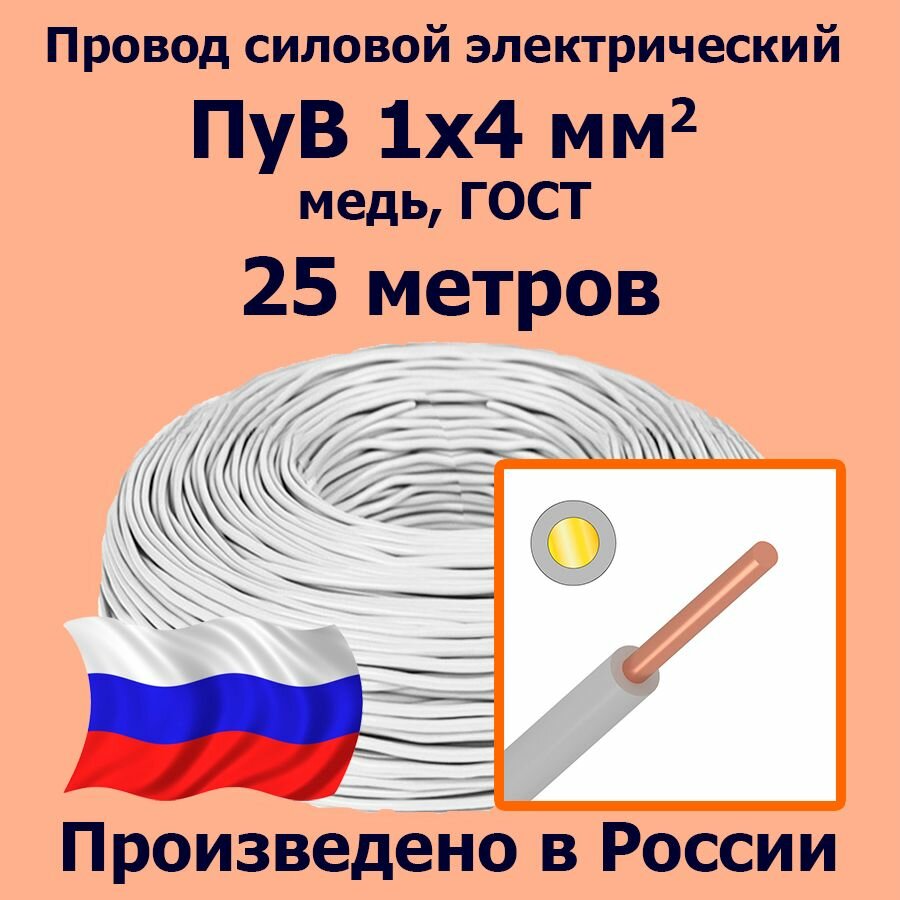 Ниже Вы можете прочитать отзывы на Провод силовой электрический ПуВ 1х4 мм2, белый, медь, ГОСТ, 25 метров, ознакомится с подробными характеристиками, посмотреть интересные обзоры и фотографии на Провод силовой электрический ПуВ 1х4 мм2, белый, медь, ГОСТ, 25 метров.