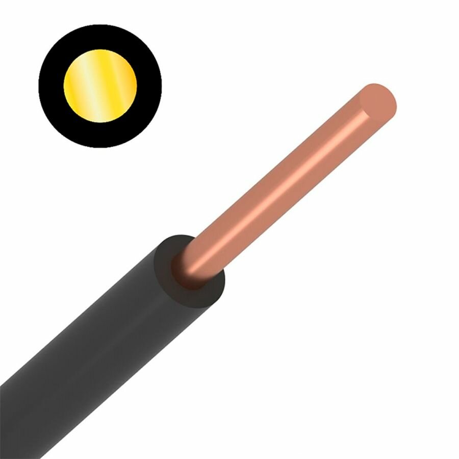 Провод силовой электрический ПуВ 1х6 мм2, черный, медь, ГОСТ, 2 метра